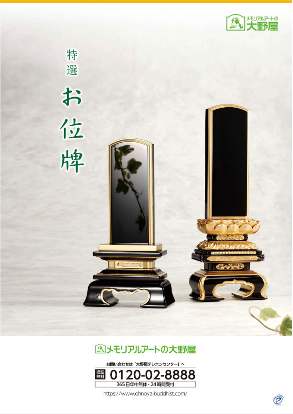 - 大野屋で取り扱う位牌の最新ラインナップを掲載した資料です。